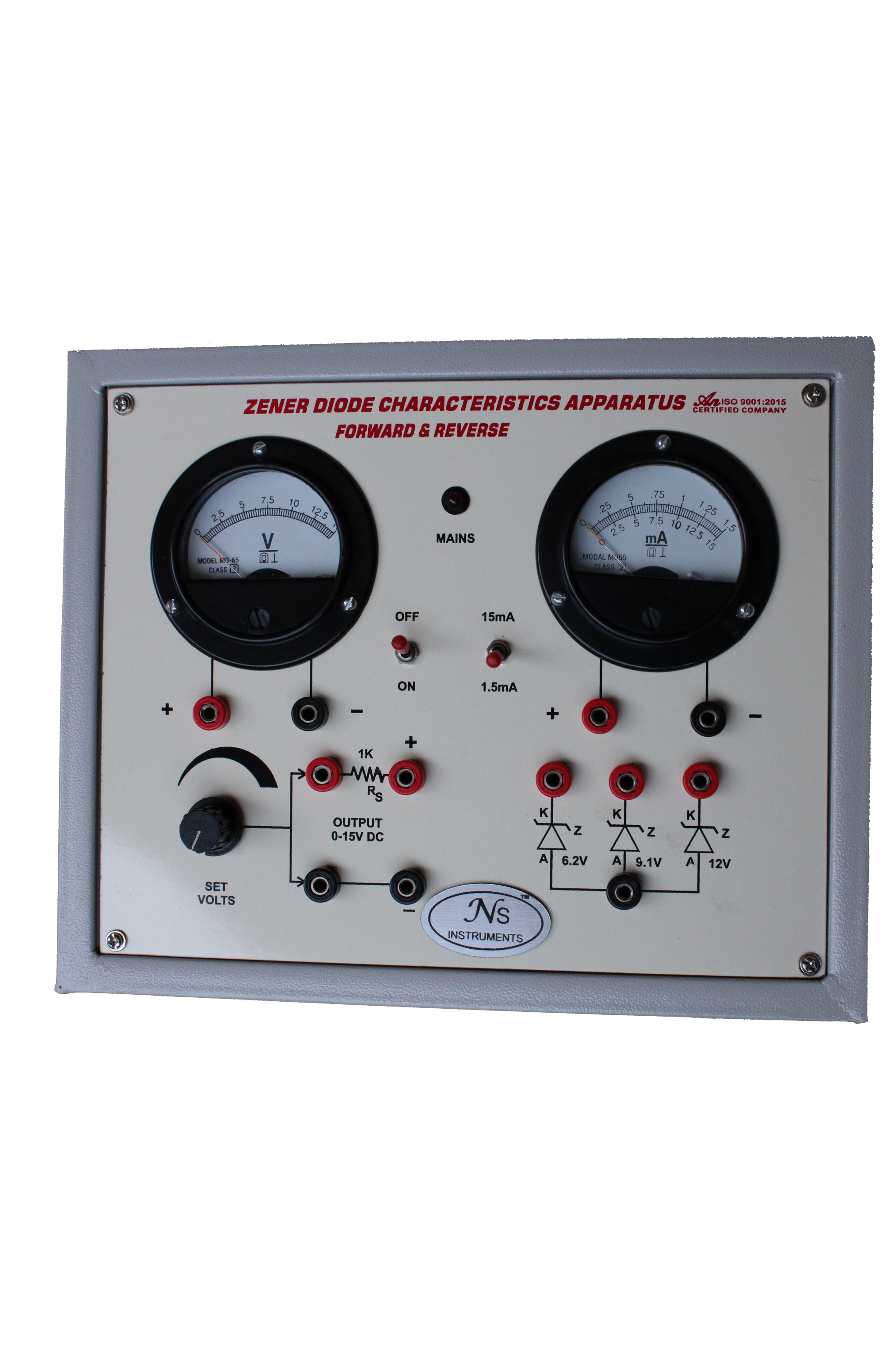 Zener Diode Characteristics Apparatus has been designed to study Forward and Reverse Bias Characteristics of a Zener Diode.